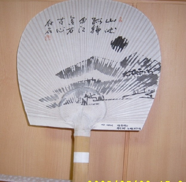 그 부채는 손에 쥘 때마다 편하고, 바람도 세게 일어나고, 또 참으로 이뻤다. 어디 공예품 가게서 샀는가 했더니, 그게 아니라 직접 손으로 만든 부채라 했다. 대나무를 꺾어 그늘에 말린 다음, 칼로 잘게 하나하나를 가르고, 한지를 입힌 그 위에 수묵화를 그려놓은 정성이 가득 담긴 말 그대로 ‘정(情)의 선물’이었다.