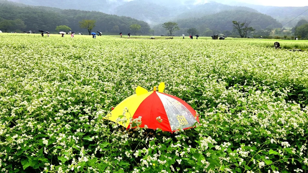 처음엔 설마 했다. 통도사 가장 큰 암자인 극락암에 이르는 길엔 예전에 논밭만 잔뜩 있었는데... 설마 거기에. 그 ‘설마’가 들어맞았다. 논밭을 다 갈아엎고 메밀밭으로 바꾸었는데 마침 메밀꽃이 내리는 비를 뚫고 하얗게 웃고 있었다.