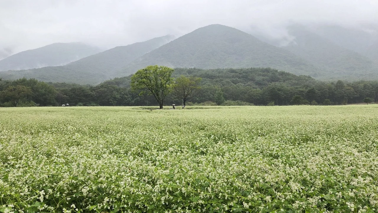 글 쓰는 현재 아직 메밀꽃이 제법 볼 만한데, 비록 지더라도 메밀이 까맣게 익어가는 모습 또한 참 이쁘다. 벼 익으면 ‘황금빛 들녘’이라 하는데, 메밀이 익으면 ‘흑진줏빛 들녘’이 된다. 특히 잘 익은 메밀이 햇빛을 받아 반짝이면 흑진주라는 표현이 딱 들어맞는다.