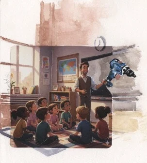 수업에 책 대신 ‘일반못’과 망치와 나무토막, 그리고 'ㅡ자' 나사 ‘一자' 드라이버, ‘十자' 나사 ‘十자' 드라이버 그리고 '보쉬'사 제품 ‘전동드릴’까지 들고 갔다. 아이들은 국어선생님이 수업과 관련 없는 공구를 한가득 들고 오니까 무척 의아한 눈치다.