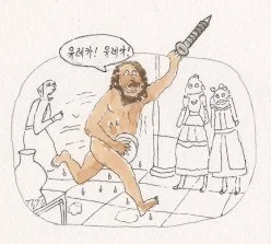 '일반못’에서 ‘一자' 나사못으로의 이동은 고작 400년 전이지만, 나사의 원리는 저 멀리 고대 그리스의 과학자 ‘아르키메데스’로부터 나왔다. 즉 ‘위대한 천재’의 머리에서 나왔다는 말이다. 허니까 ‘일반못’에서 ‘一자' 나사못에 이어지는 발상 같은 건 아무나 할 수 없다. 남이 생각할 수 없는 걸 만드는 건 천재나 가능한 영역이니까.
