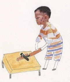 아무 소리 않고 망치로 나무토막에 못을 박았다. 아이들은 멀뚱히 바라보고만 있을 뿐 평소와는 다른 분위기에 숨도 죽인다. 그런 뒤 한 명을 불러내어 못을 빼보라고 했다. 물론 뺄 수 없다. 머리끝까지 단단하게 박힌 못을 어떻게 뺀단 말인가.