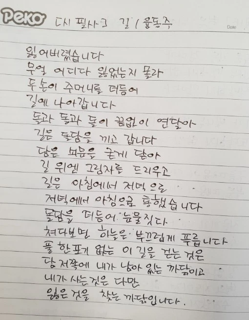 성당이나 교회에선 신부님이나 목사님이 ‘성경 필사’를 권하는 분이 많다고 한다. 성경을 손글로 쓰다 보면 그 내용이 오래 기억에 남으니까. 시를 즐기는 사람들 역시 시 필사가 도움 된다. 시를 직접 손글로 써보면 시 속에 담긴 내용이 더 깊이 다가오니까.