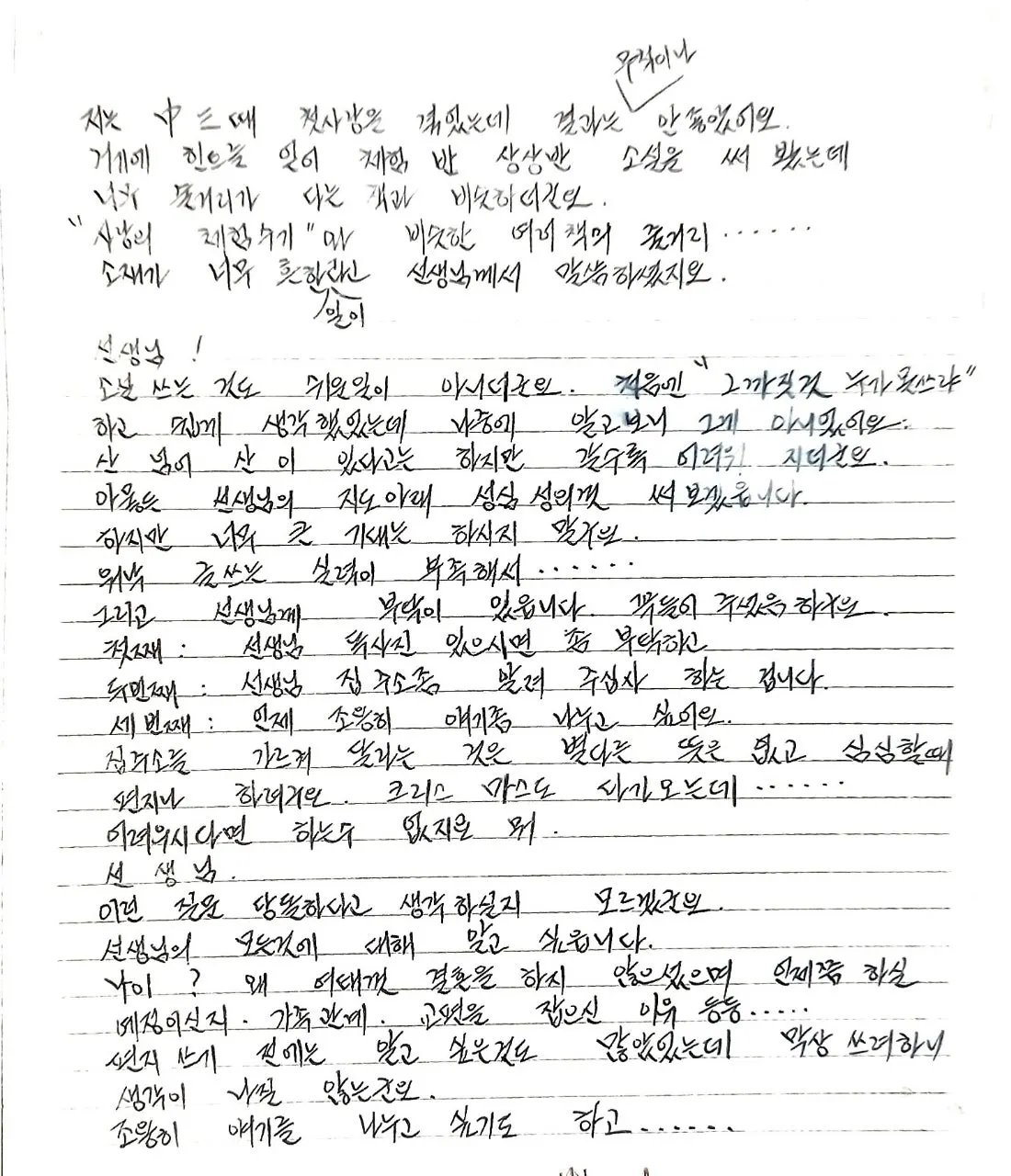 그리고 선생님 부탁이 있습니다. 꼭 들어주셨음 하구요.
