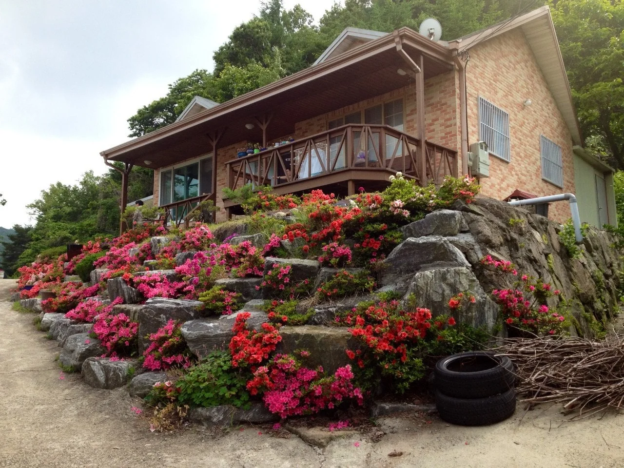 우리 집이 일 년 중 가장 아름다울 때가 바로 이맘때다. 영산홍이 흐드러지게 피기 때문에. 아시다시피 다른 곳에선 영산홍이 피었다가 다 졌다. 그럼 우리 집은? 흔히 말하는 ‘늦영산홍’인데 산철쭉에 가까우며 해마다 이즈음 핀다.