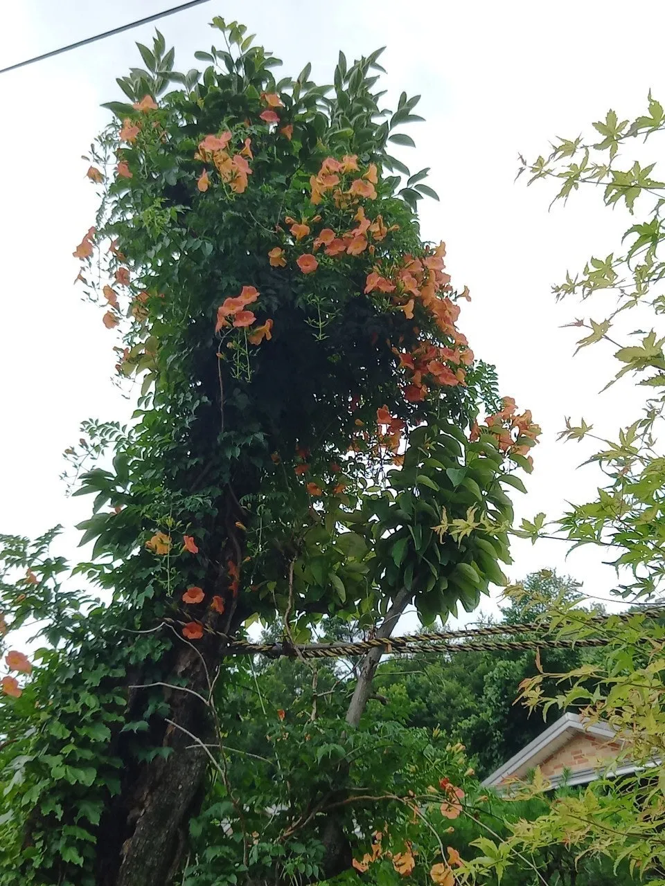 (우리 집 감나무에 매달린 능소화)