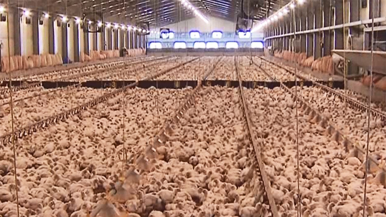 실제 양계장에선 컨베이어벨트가 놓여 있어 거기를 타고 달걀이 줄지어 나옵니다. 그 모습이 마치 자동차 생산과정과 같다는 뜻입니다. 그리 보면 암탉은 사육된다 말하기 어렵습니다. 차라리 '양계장'이란 공장에서 생산된다고 해야 하겠지요.