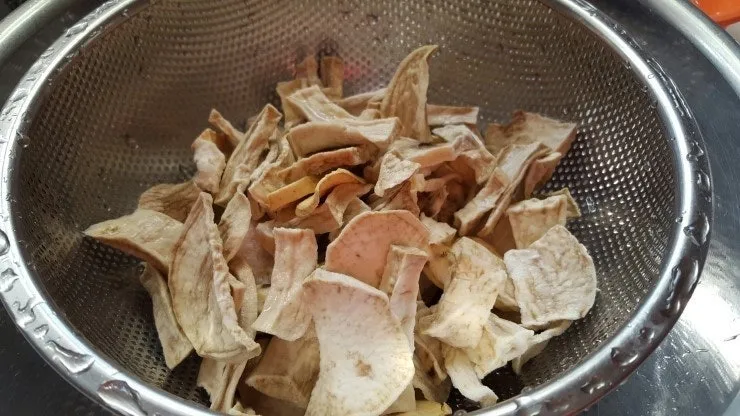 이렇게 길게 빼때기 거론한 까닭을 눈치챘으리라. 올가을에도 수확한 고구마를 썰어 말렸기 때문이다. 다른 해보다 양이 적어 조금밖에 못했지만 추억의 맛을 살리기 위해 널어 말린다. 또 그래야 글감도 얻고. 바짝 마른 빼때기는 바로 먹어도 되지만 이(빨)가 깨질 정도로 단단해 부러져도 좋다는(?) 각오로 먹는다면 몰라도. 양이 제법 되면 팥을 조금 넣고 끓이면 맛있는 ‘빼때기죽’이 되고, 만약 이가 좋으면 입안에 넣어 오래 씹으면 단맛과 고소함이 어우러진다.