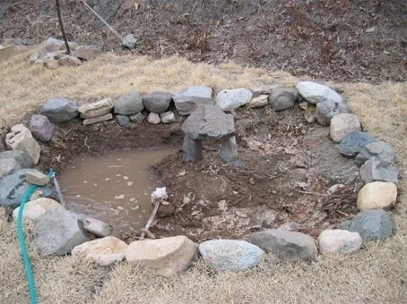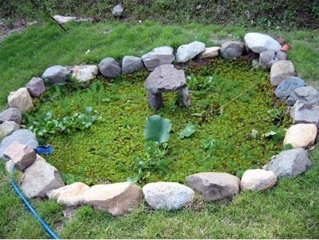 작년 여름, 처음 연못을 만들기로 작정했을 때 바닥을 어떻게 할까가 가장 신경 쓰였다. 즉 물 빠짐을 막기 위해 어떻게 하느냐는. 내가 돌아다니며 본 다른 집의 연못 바닥은 대부분 시멘트로 처리했거나 심지어 두꺼운 비닐을 깔아 놓았다. 방수 생각하면 그게 가장 편하다.