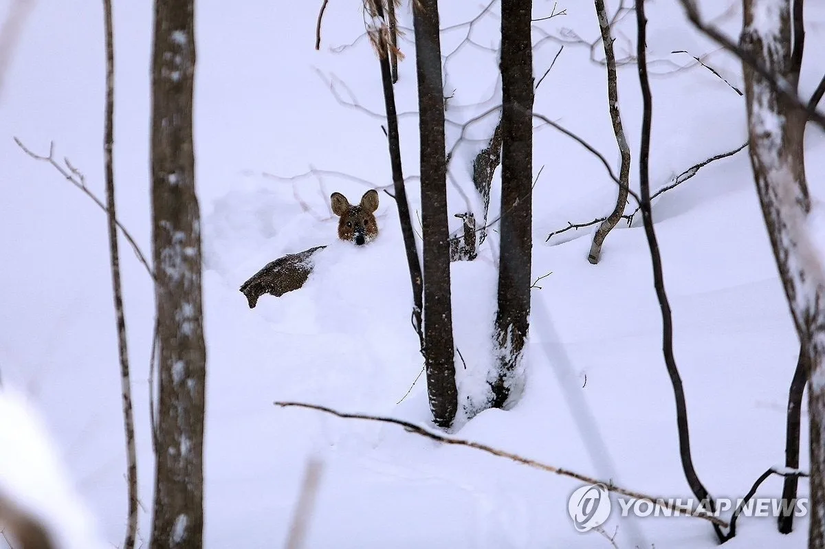 고라니가 잡식성이라 아무거나 잘 먹지만 일단 눈에 보여야 찾아 먹지 눈 덮이면 먹이도 다 파묻힙니다. 까치는 날개가 있어 고라니에 비해 눈길을 걷지 않아도 되니 낫습니다만 그래도 먹이 못 찾기는 마찬가집니다.
