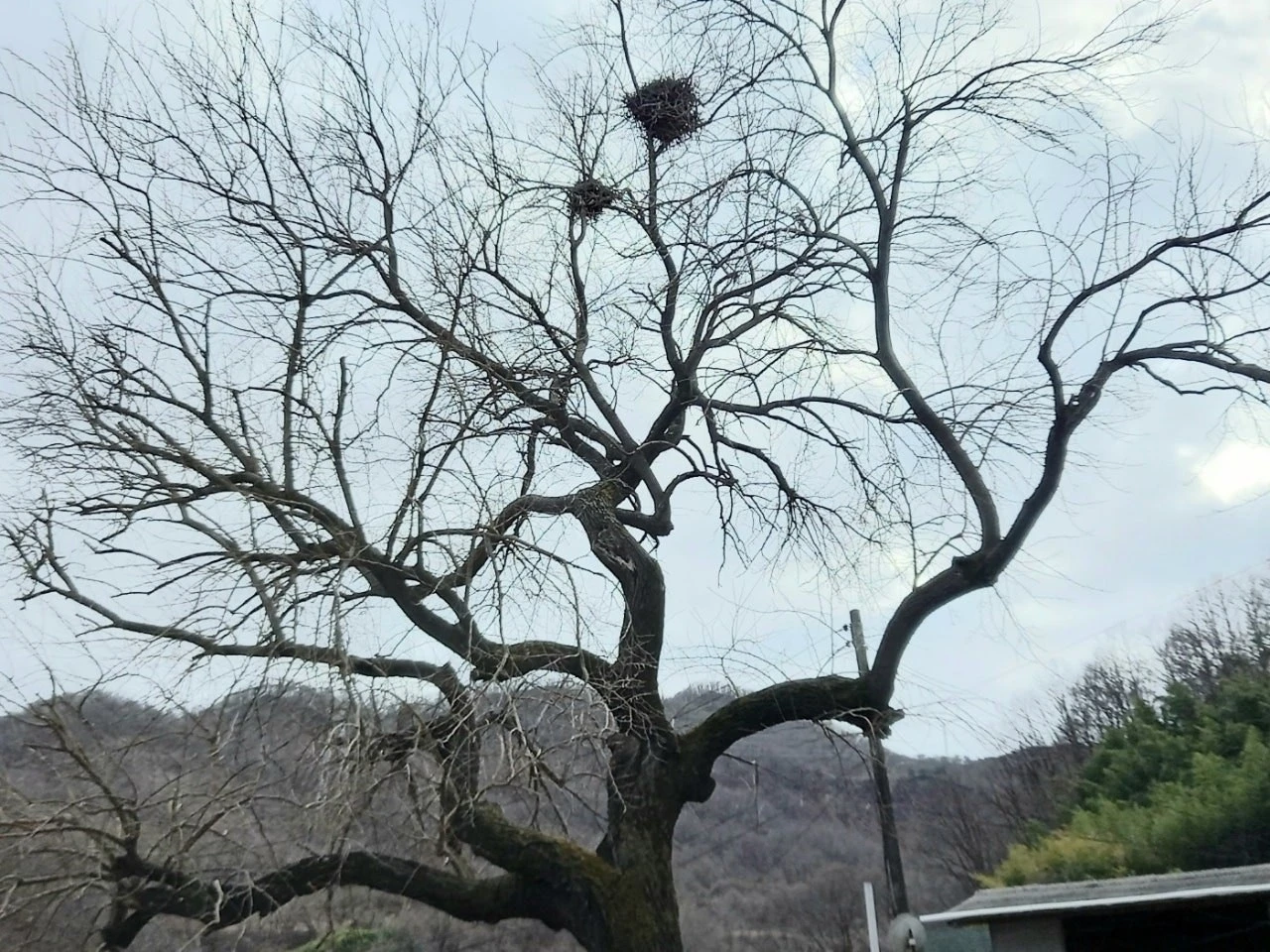 사람 집으로 말하면 등기가 완전히 끝난. 아마 까치집 건축물대장 있다면 주인이 누군지 쓰여 있을 터. 십 년 전에도 감나무에 큰 까치집을 지었는데 감나무가 넘어질 위험에 반 이상 잘라내다 보니 절로 까치집도 사라졌다.