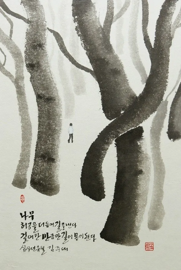 *. 그림은 시인이 직접 그렸으며, 첫째는 '채널 yes'(2015. 5. 11)에서, 둘째는 콩나물신문(2014. 7. 28)에서 퍼왔습니다.