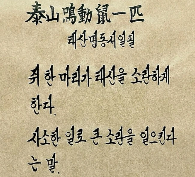 태산명동서일필(太山鳴動鼠一匹)이란 말이 있다. 글자 그대로 해석하면 ‘태산이 무너질 듯한 소리가 나더니 새앙쥐 한 마리 지나가더라’란 뜻이다. 시작만 요란하고 결과가 형편없거나 소문이나 큰 기대에 비해 나온 결과물이 보잘것없을 때 쓰는 말이다.