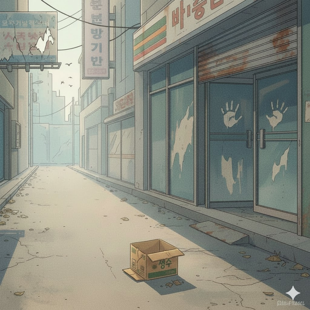 철제 셔터는 반쯤 내려온 채로 위태롭게 그 자리를 지키고 있었다.