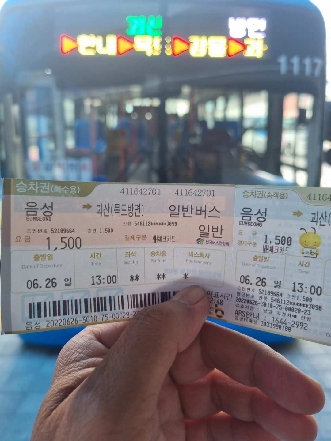 음성터미널(10:10 출발)->목도-> 괴산 터미널