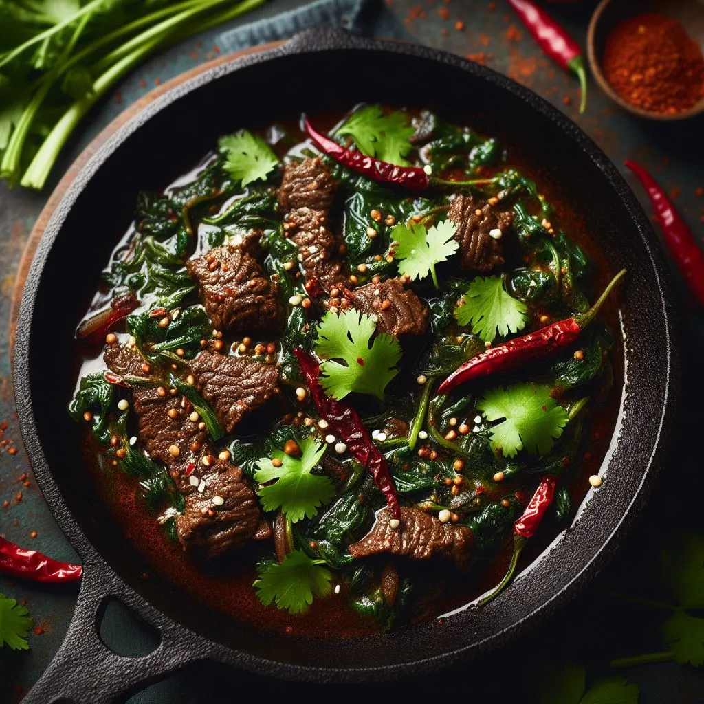 6,커리 - 비프 사그(Beef Saag): 비프 사그는 시금치를 베이스로 한 소고기 커리로, 고소한 맛과 함께 풍부한 영양을 느낄 수 있습니다. 다양한 향신료와 함께 조리되어 특유의 풍미가 더해져요. 밥이나 난과 함께 먹으면 어떤 음식과도 잘 어울립니다.