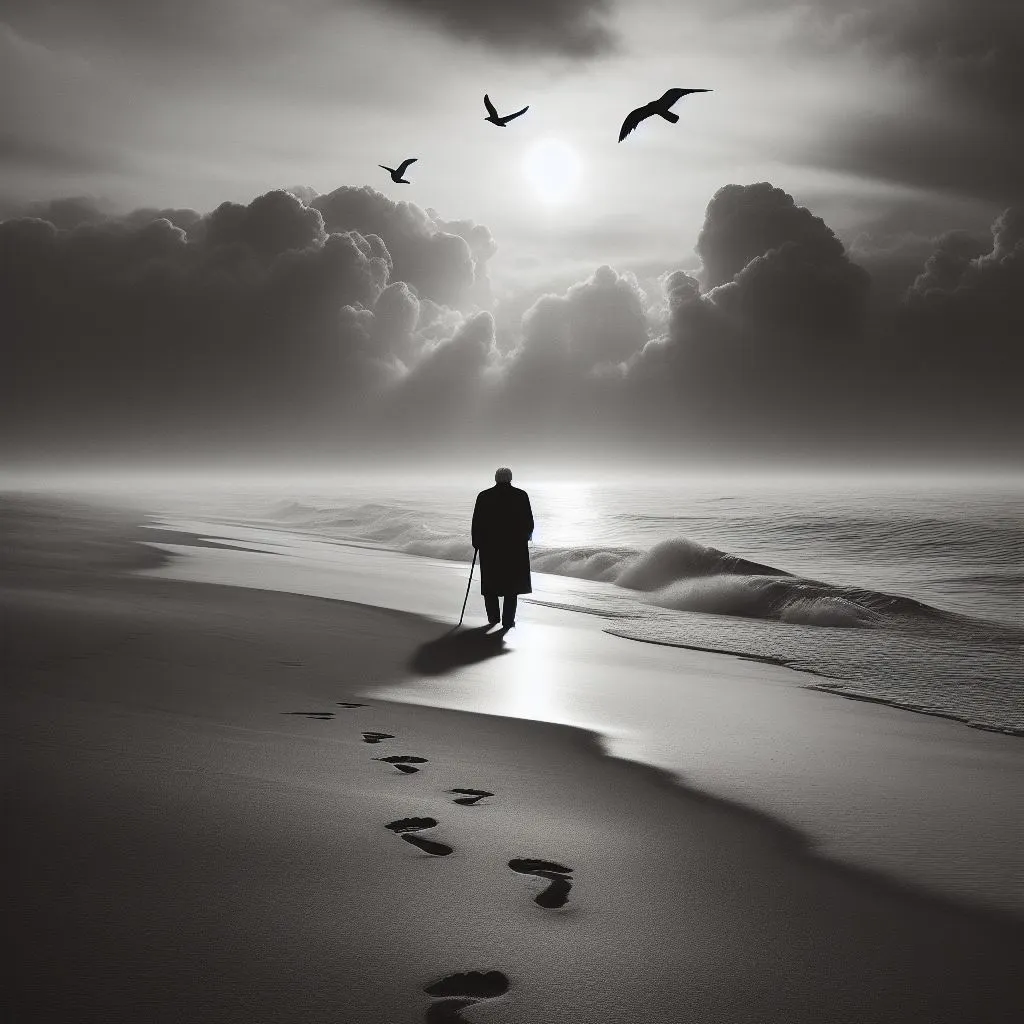 노인의 발자국은 저 하늘 높이 울려 퍼지는,