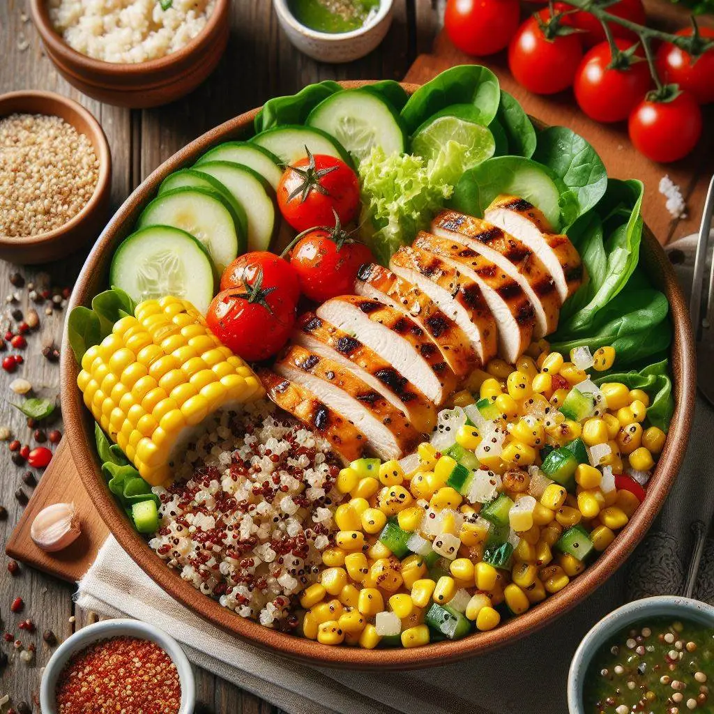 옥수수 퀴노아 샐러드와 그릴된 닭가슴살