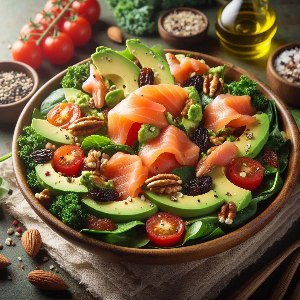훈제연어 샐러드 (아보카도, 시금치, 케일, 토마토 등)