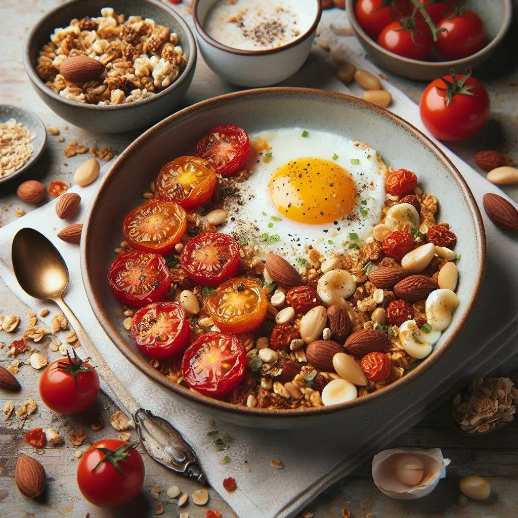 올리브 오일로 볶은 토마토와 마늘을 곁들인 스크램블 에그