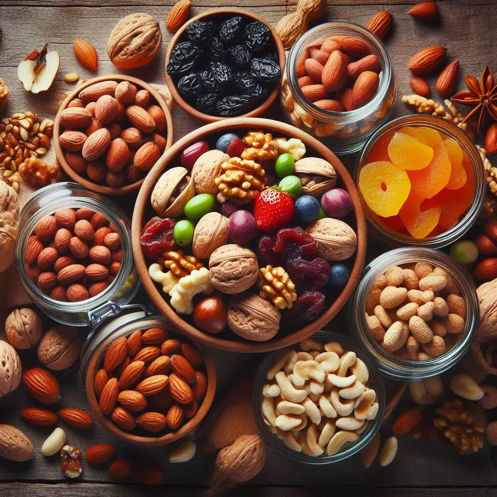 각종 견과류와 드라이 과일: 아몬드, 호두, 건포도, 건크랜베리 등을 조합하여 먹으면 필수 영양소를 보충할 수 있습니다.