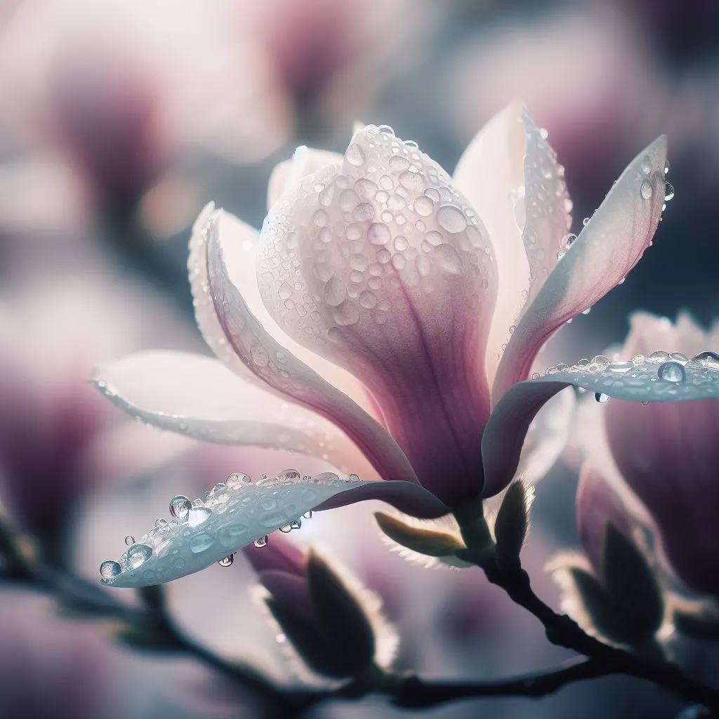 빗방울이 흩날리는 가운데목련꽃은 자신의 아름다움을 노래하며비를 맞으며 희망의 향기를 퍼뜨리네