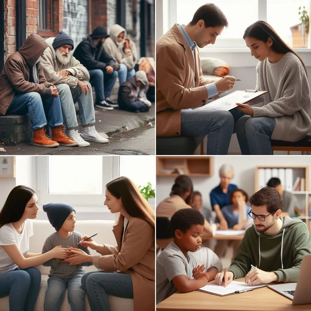 두 번째 사진에서는, 사회복지사가 아이들과 함께하는 모습을 볼 수 있습니다. 아이들은 즐거운 놀이를 즐기며, 사회복지사는 그들을 돌보고 가르치는 모습이 담겨져 있습니다. 이 사진은 사회복지사들이 어린이들의 성장과 발전을 지원하고 보호하는 데 얼마나 중요한 역할을 하는지를 보여줍니다.