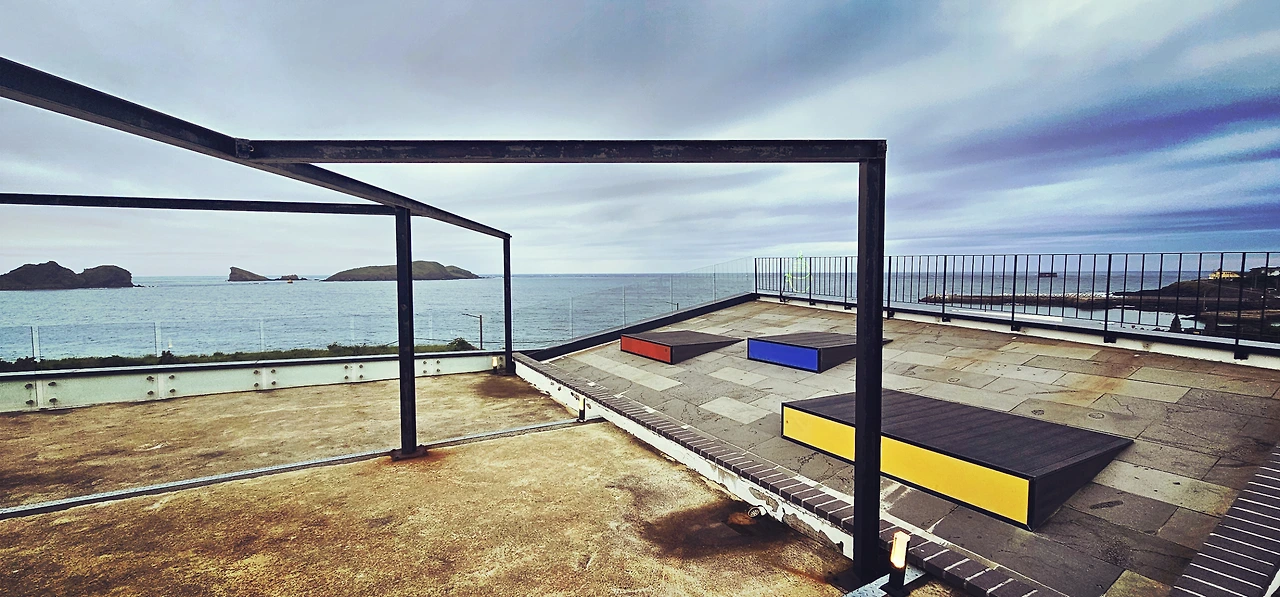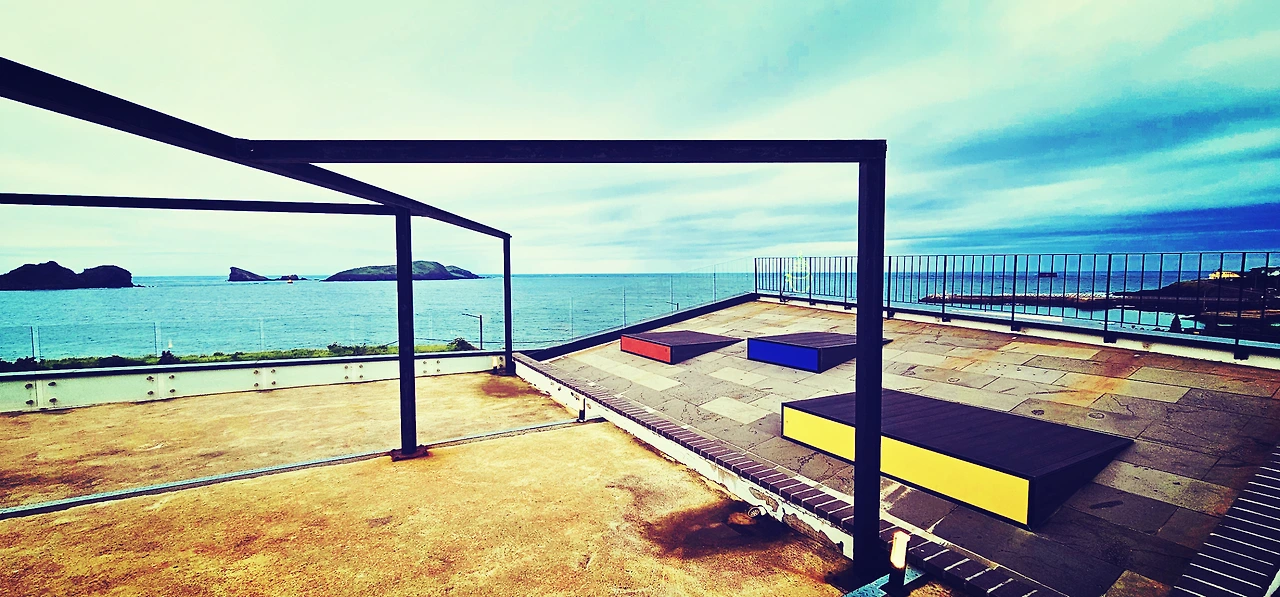 그 위에 몬드리안의 색채가 겹쳐 있었다.