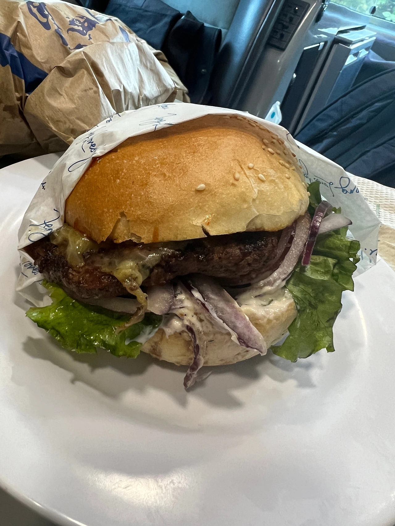 멀리서 보아도 ‘바로 저기구나’ 알 수 있었는데, 많은 사람들로 문전성시를 이루고 있었으며 아주 많은 사람들이 줄을 서서 와글와글 얘기를 나누고 있었다. 나도 자연스럽게 그 대열에 합류해서 여기 줄 섰다 저기 줄 섰다 하다가 결국 주문하고 한 30분 가량을 기다려 버거를 받아들었다.