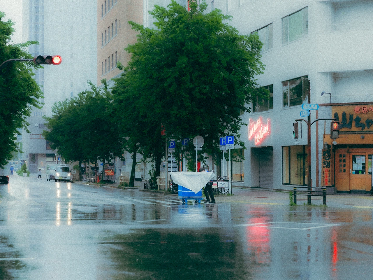 <영상은 코메다커피 가게 앞에서 촬영한 비 오는 날을 기록한 영상이다>