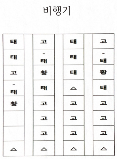 첫 수업에 받은 악보는 '비행기'와 '나비야'였습니다. 생각해보니 다른 악기를 배울 때도 첫 곡이 비행기와 나비야였던 것 같았습니다. 기본음이 반복되고 누구나 이미 알고있는 음정이라 왕초보 단골 곡이 되었나봅니다. 그런데, 제목은 비행기와 나비야로 쓰여있지만 악보는 영 다르게 생겼습니다. 악보가 아니고 원고지 같아요. 세로로 쓰는 원고지. 한 칸에 한 글자 혹은 빈칸 혹은 기호가 있었지요. 그리고 음이름도 달랐습니다. 비행기 악보에 "고 - 태 황 태 고 고 고 △" 이렇게 적혀있었어요. 음이름이 도레미-가 아니고 고태황- 이라고 써있는 겁니다. 국악에서 악보는 정간보, 음이름은 율명이라 부른다 합니다. 중고등학교 음악시간에 들어봤는지 영 낯설지는 않습니다.