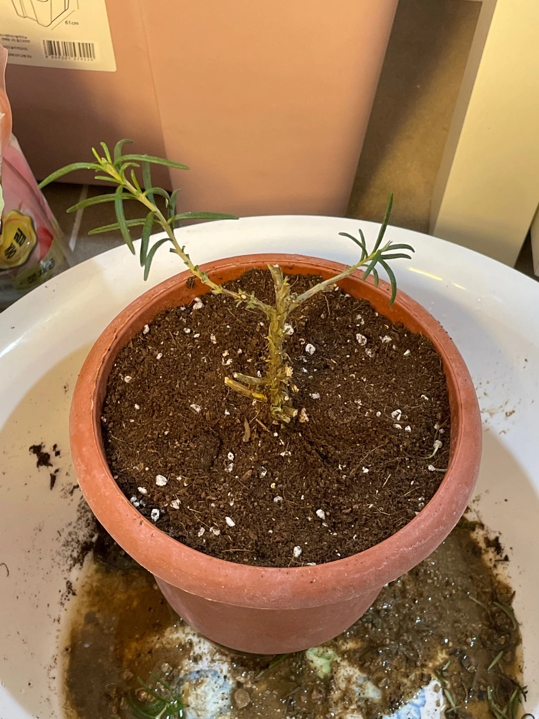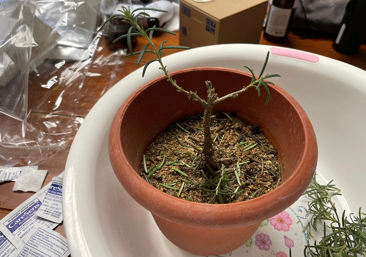 사실 로즈마리를 썩 좋아하는 편도 아니고 그냥 물꽂이를 해보고 싶었던 것뿐이라- 가지를 싹 솎아다 꽂아버리고 남은 화분은 그냥 버리려고 했다.