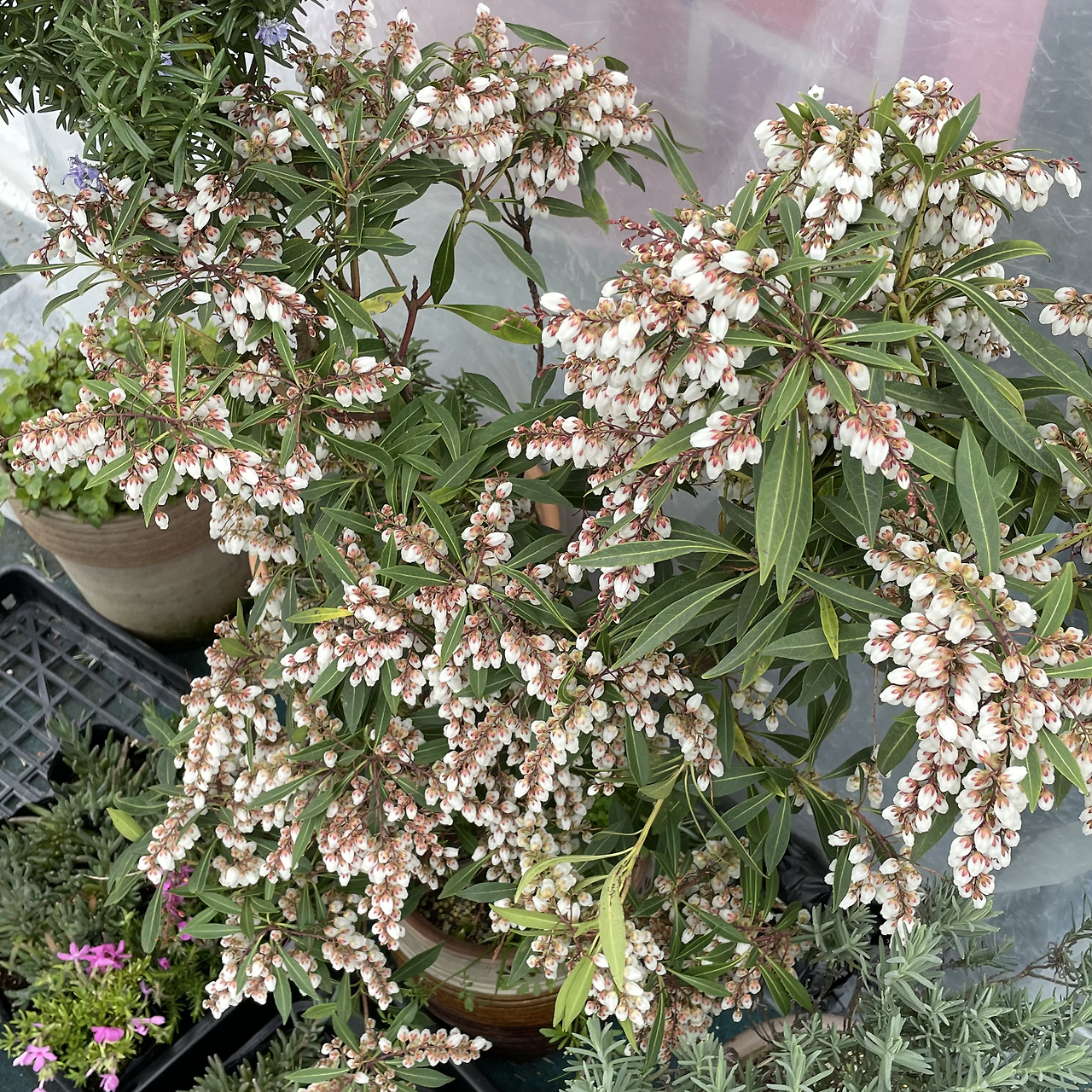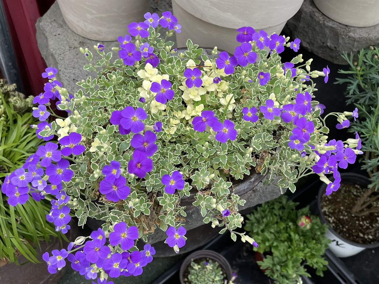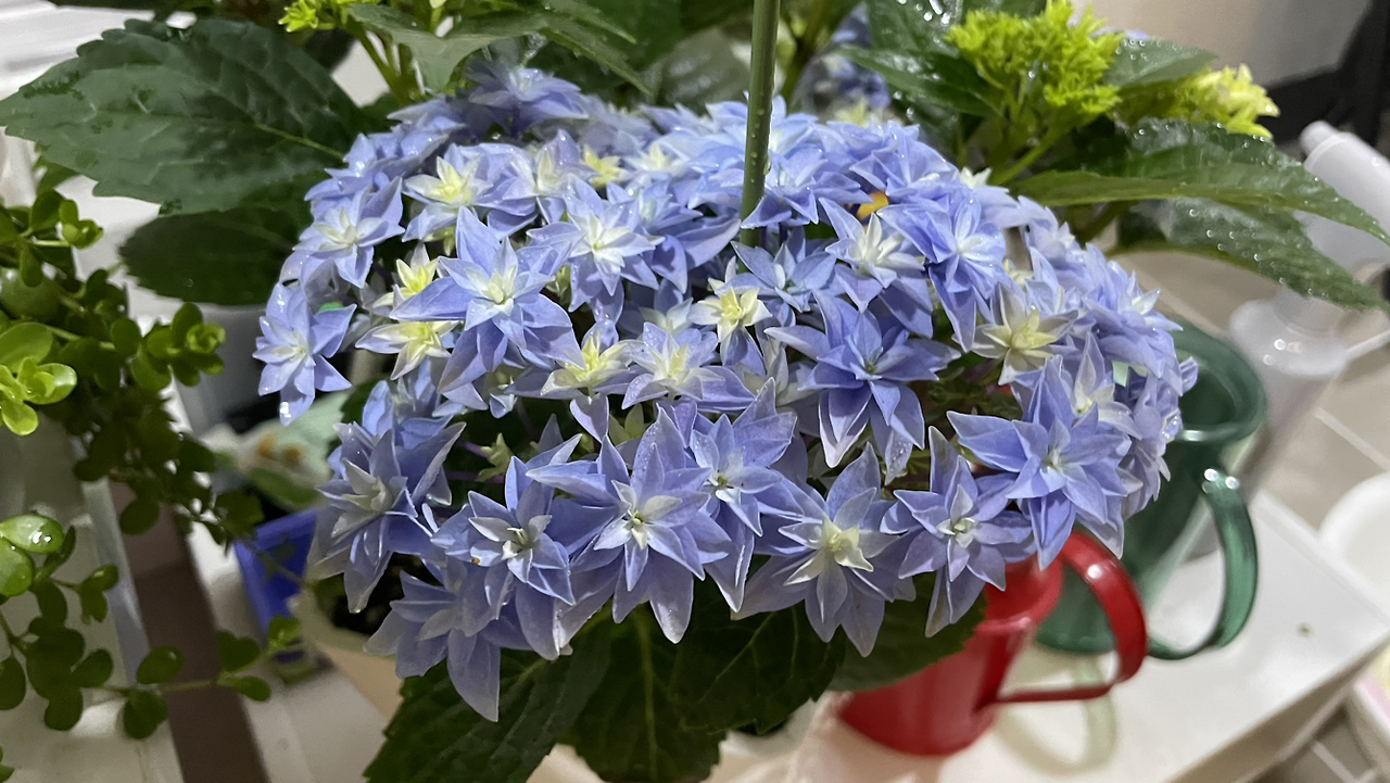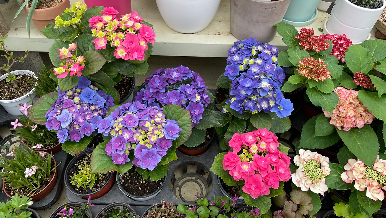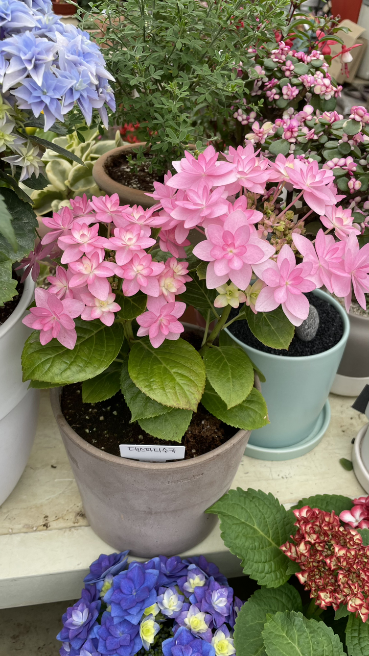 만 원 언저리의 포트를 사 와서 고이 기르겠다는 결심으로 들렀는데, 만 원은 무슨- 저 하늘색 겹별수국은 삼만 원이라고 한다. 댄스파티 수국도 온라인에서 사진으로 만났던 것과는 다르게 미모가 물이 올랐고, 아랫단 별수국도 청보라색이 참 예쁜 데다 가격대도 딱이었지만... 나에게는 선택지가 있었으나 없었던 것과 마찬가지였다.