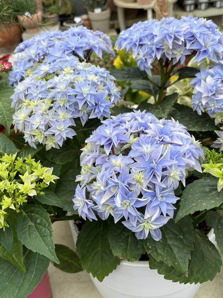 정말 하나같이 아름다워서 눈을 뗄 수 없게 만드는 수국들이었지만, 그중 하필이면 제일 큰 포트에 앉아계시는 하늘색 수국에 팍! 꽂혀버리고 만 것이다. 제일 좋아하는 하늘색에 보라 한 방울 섞인 색에다, 겹겹이 풍성한 별 모양 꽃이파리... 플로린이며 페더며 열심히 적어왔던 이름들은 전부 머릿속에서 까맣게 지워지고 말았다.