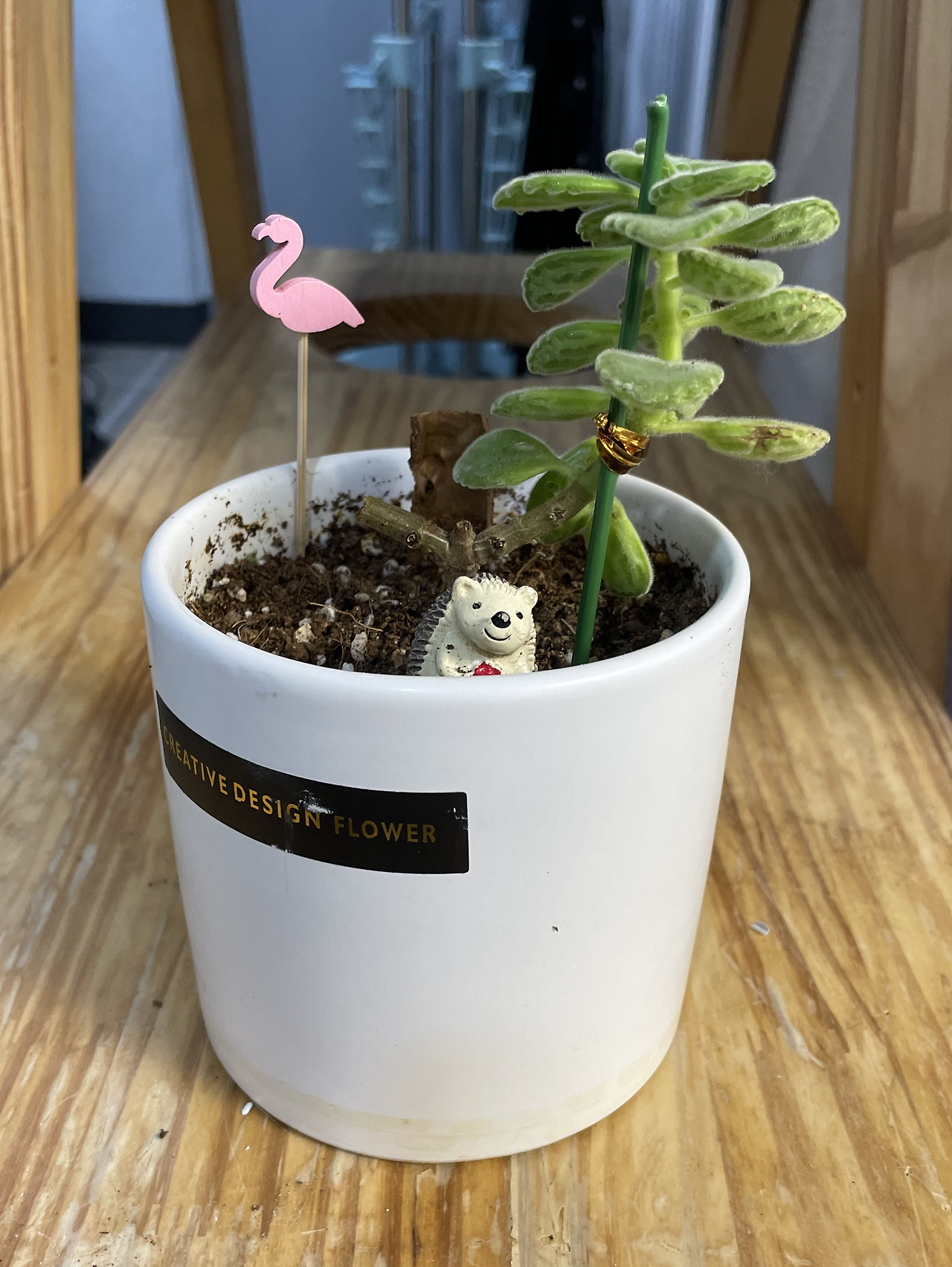 아직은 흙을 집에 들일 생각을 하지 않았기 때문에, 물꽂이 용으로 들였다. 지금은 물꽂이 한 애들도 반쯤 초록별로 떠났고, 본체는 강전정 이후 과습으로 초록별 문턱에 서 있다. 수경으로 잔뿌리가 나는 것 같아 희망을 버리지 못하고 있을 뿐..