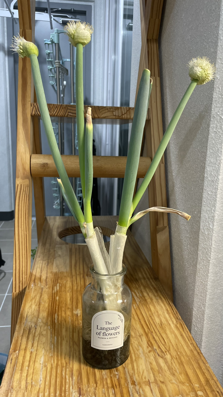 이마트에서 할인하는 대파를 사 와 손질하던 중, 문득 키워보고 싶어서 페트병에 네 뿌리를 줄기를 조금 넉넉히 남겨 집어넣었다. 쑥쑥 자라더니 꽃을 피우고 있다. 파꽃이 핀 모습을 본 건 우리 가족 모두 처음이다.