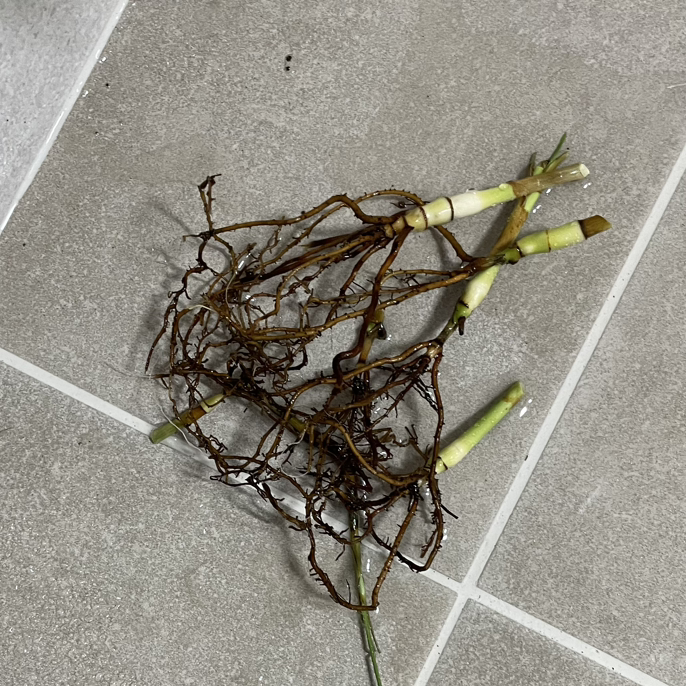 흙을 전부 털어내고 남은 흙은 샤워기로 박박 씻어 내렸다. 뿌리끼리 엉켜 있어서 겁이 많이 났지만 밑져봐야 본전이라는 마음으로 적당히 풀어내고 끊어냈다. 여전히 내가 맞게 하고 있는지는 모르는 상태로 좌충우돌 돌진해 본다. 사진으로 친구들에게 자문을 구하니 의외로 뿌리가 튼실해서 아직 사망하진 않았나 보다, 살 지도?라는 답변이 돌아왔다. 든든하다 내 친구들 ㅠㅠ 하지만 야자 뿌리를 본 적은 없어도 확실히 잔뿌리는 죄다 썩어버린 것 같다. 그 와중에도 간간이 한두 개 새하얗고 가느다랗고 긴 뿌리가 보이는 걸 보니 식물은 정말 대단하다.