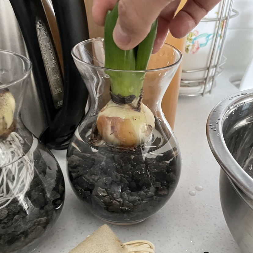 이사 온 지 얼마 되지 않았던 어느 날 (그러니까 몇 주 전). 멍하니 카톡으로 날아오는 광고를 심심풀이 삼아 구경하던 중, 눈에 확 들어오는 아이템을 보았다. 봄을 맞아 히아신스 꽃을 집에서 피워보세요~ 뭐 그런 종류의 광고였다. 수경재배용 유리꽃병과 구근, 장식돌을 세트로 판매하는 물건이었는데, 동물의 숲이라는 게임에 나오는 꽃 중 히아신스를 제일 좋아했던 나는 고민도 하지 않고 결제 버튼을 눌러버렸다. 화분은 안 키운다며! 라는 내면의 질책에 수경이라 괜찮아~ 이런 변명을 중얼거리며.