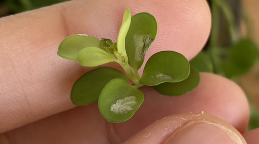 일단 정상적인 면부터 한 번 체크하고, 이상한 부분을 들여다보기로 했다. 마치 엽록소가 사라진 것 마냥 하얗고 투명한 부분. 도대체 왜 이렇게 보이는 거지...? 이렇게만 봐서는 도저히 알 수가 없었다. 에휴.. 뭐 하긴 아무것도 모르는 내가 이걸 들여다봐야 알아낼 게 있겠냐- 며 돌아서려다 문득, 단면을 보고 싶다는 생각이 들었다. 아트나이프는 근처에 보이지 않고.. 그럼 그냥 분질러버리지 뭐! 관엽은 찢으면 되고 다육이는 부러뜨리면 된다. 좋아-