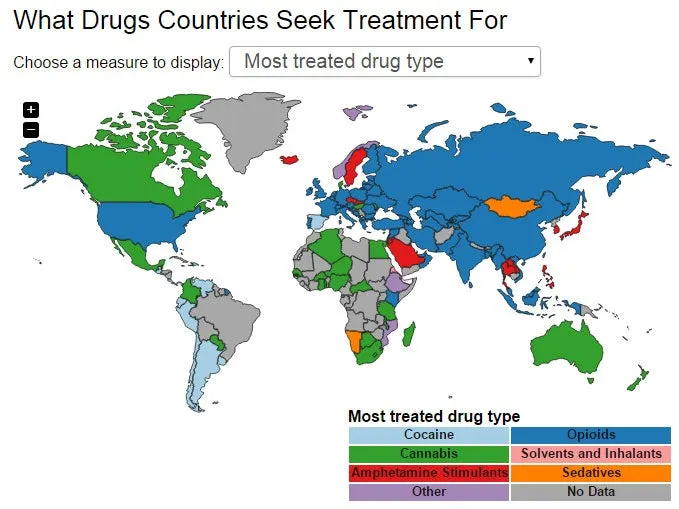 Maps show where cocaine, cannabis, heroin and amphetamines are the biggest problem.