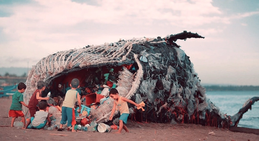 인간이 버린 바다 쓰레기를 먹고 죽은 고래의 뱃속에서. 대략 40kg 양이되는 플라스틱 나왔다고 한다.