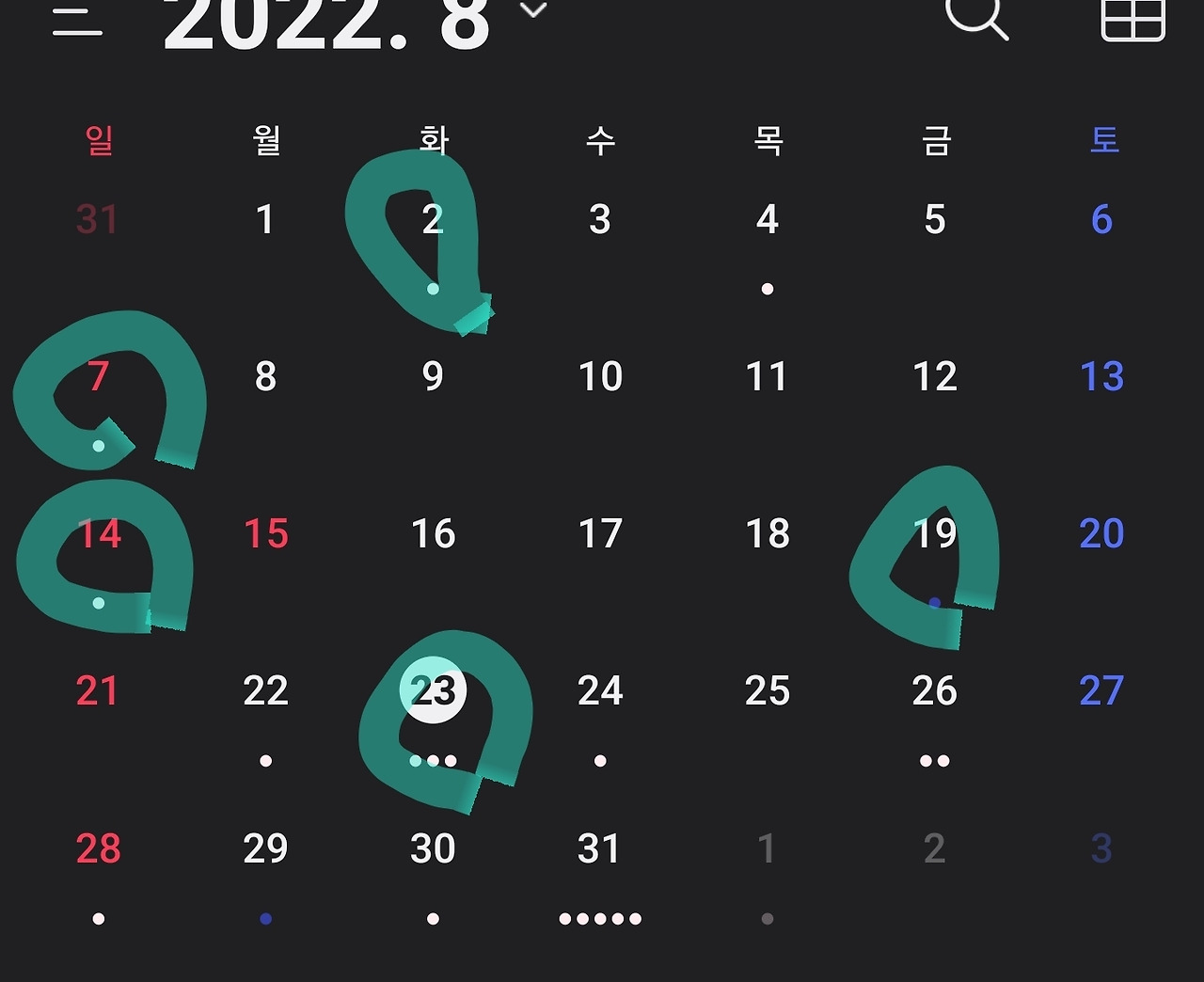 다음은 5일 1일 간격이면 8월 28일, 그리고 29일??