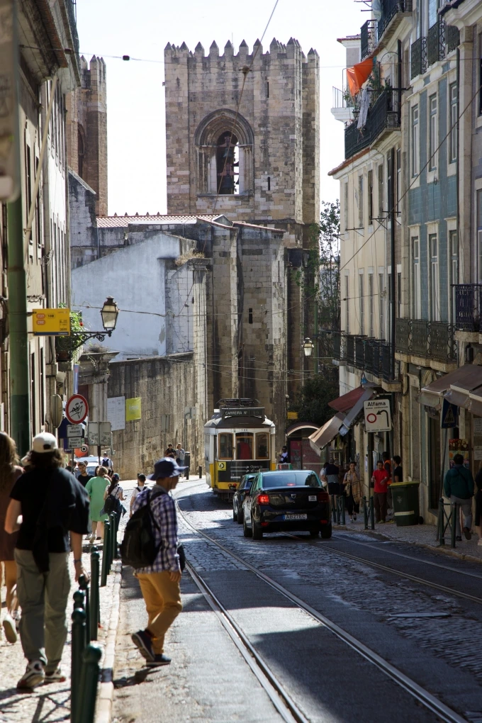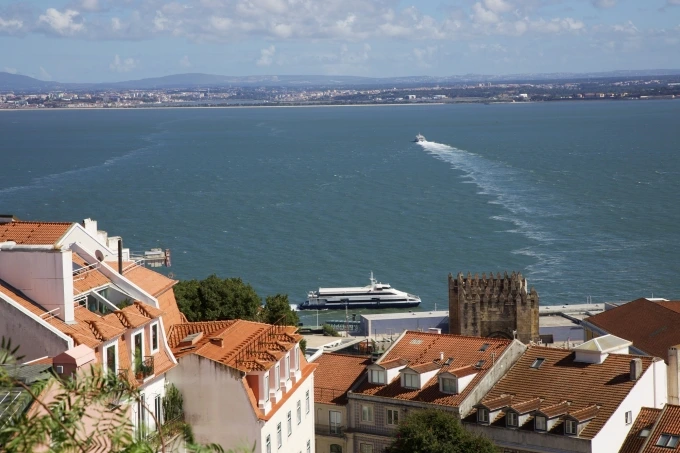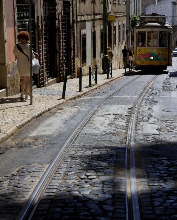 7개의 언덕으로 이루어진 도시. 1755년 대지진으로 파괴된 후 언덕 위 바이후 알투와 알파마 지역은 예전 모습을 복원했지만 아랫동네 바이샤 지구는 체스판처럼 정비해 새로 건설된 곳. 언덕 위를 오르내리는 노란 트램이 상징적인 모습으로 알려진 리스본. 그곳에서 우선 고지대로 올라가 전체를 관망하기 위해 툭툭을 타고 조르지 성까지 갔다. 성 안으로 들어가 공작이 화려한 날개를 잔디밭에 접은 채 끌고 산보하는 공간을 지나 성벽으로 갔다. 리스본을 가로지르는 태주 강이 바다처럼 넓은 폭으로 시원스럽게 펼쳐지고 그 앞으로는 분홍에 가까운 붉은 지붕들이 낮게 앉아 있다.