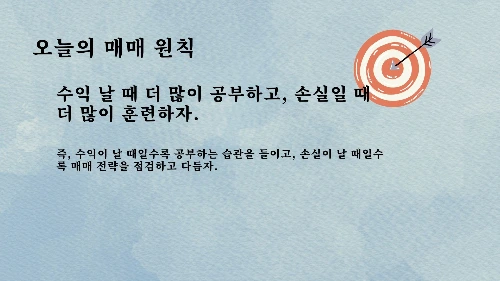 즉, 수익이 날 때일수록 공부하는 습관을 들이고, 손실이 날 때일수록 매매 전략을 점검하고 다듬자.