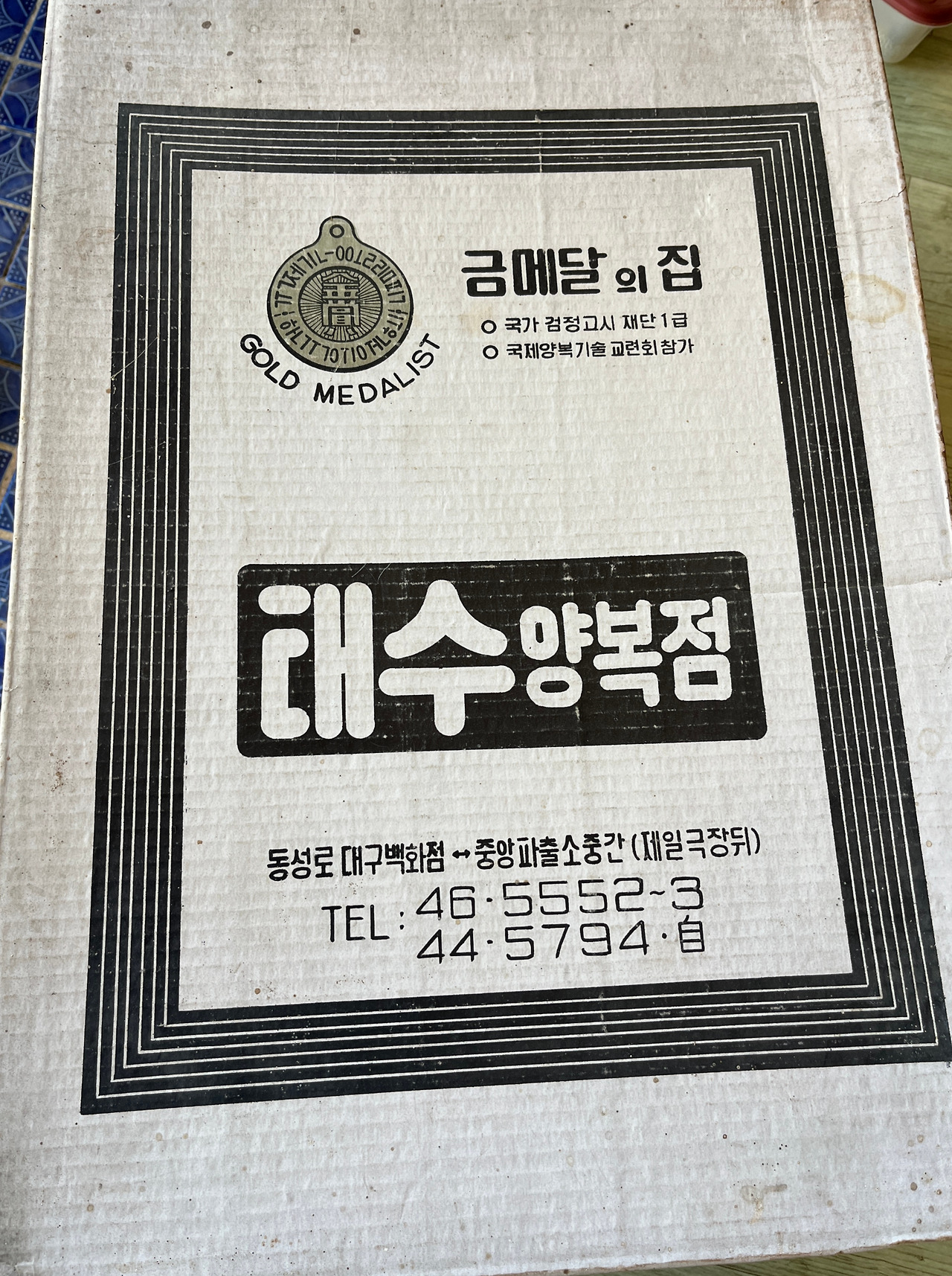 태수양복점 박스는 내가 결혼할 때 남편의 맞춤양복이 들어있던 상자다. 남편과 나의 추억이 담긴 상자이기도 하고 오랫동안 시어머님이 소중한 물건을 보관해 온 상자이기도 하다. 시어머님이 돌아가신 지 몇 년이 지났지만, 이 상자를 버리지 못했다. 며칠 전에 큰맘 먹고 버리기로 했다. 그래서 사진을 찍으면서, 44년이나 살아온 상자의 입장이 되어보았다.