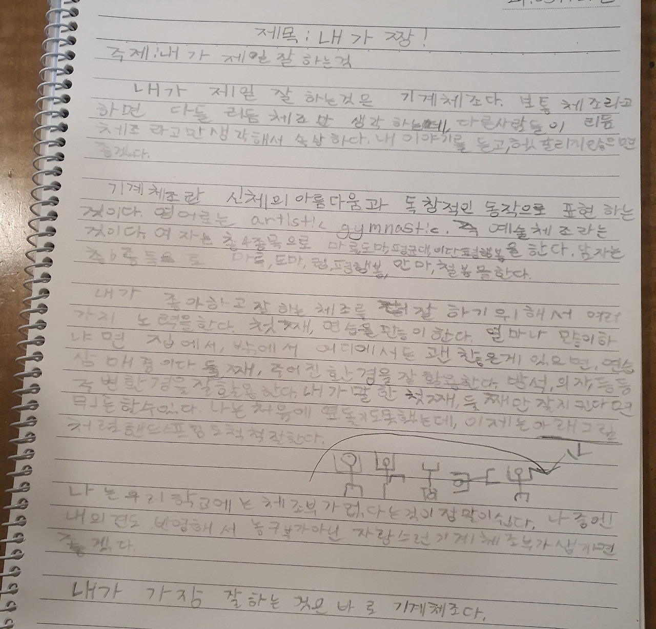 체조를 잘하는 것에 대해 쓰려고 했는데