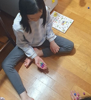 지난 3월, 월말에 학급에서 공기놀이 대회를 한다고 해서 어쩔 수 없이 공기놀이를 시작했다. 처음에는 위로 똑바로 던지는 것조차 어려워했고 던진 것을 받는 것도 여러 번 시도한 끝에 성공하곤 했다. 불과 보름 만에 손놀림이 빠르고 정확해져서 반에서 제일 잘하는 친구를 이겼다고 좋아했다.