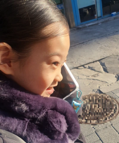 찬 바람이 매섭던 날, 새 휴대폰으로 통화하는 표정이 무척 밝다.