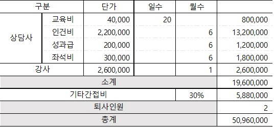 상담사 2인이 퇴사함으로서 위탁사는 5천만원 + @를 잃어버리게 되었다.