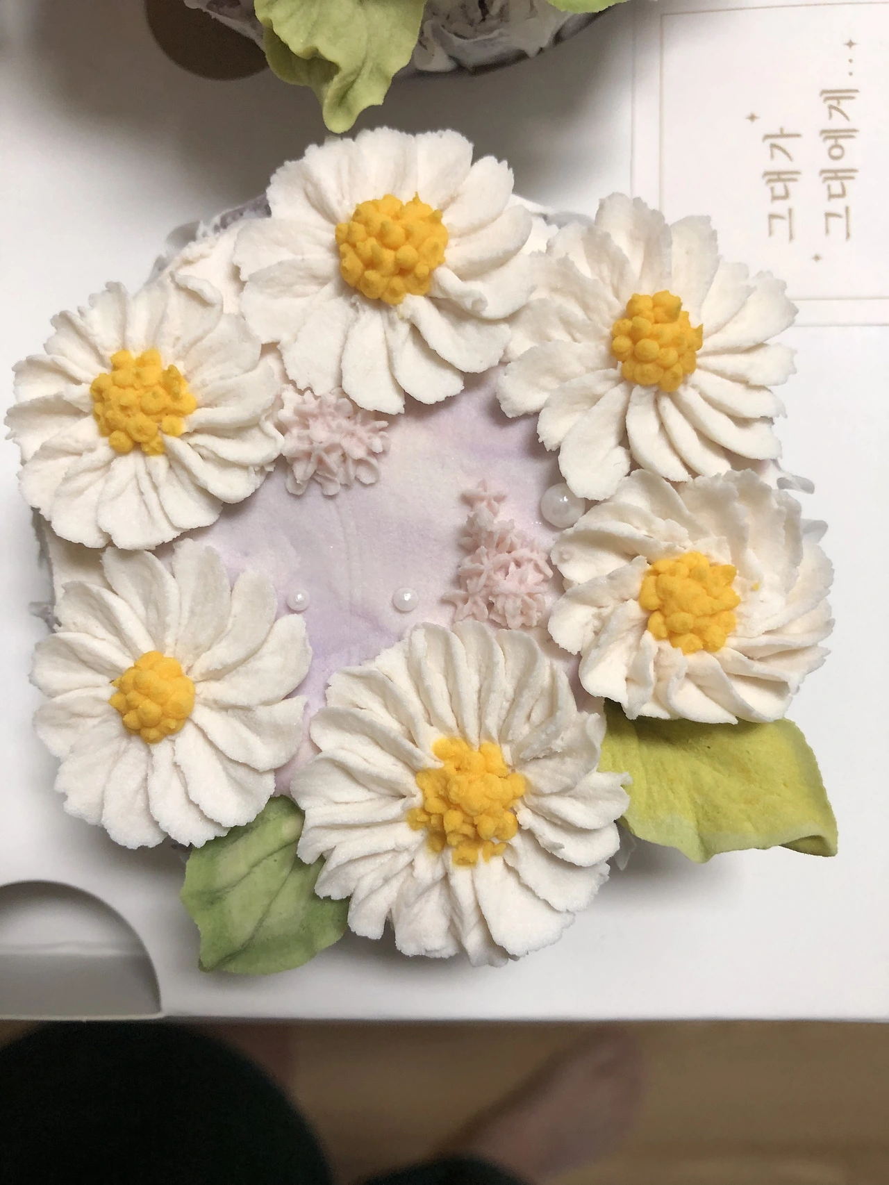 나는 이 케이크 꽃을 먹지 말고 냉장고에 보관하자고 했다. 이토록 아름다운 케이크를 칼로 자른다는 게 내 마음을 아프게 할 것 같아서다. 마치 꽃밭에 예쁘게 피어 자태를 뽐내고 있는 꽃송이들을 짓밟는 기분 이라고나 할까? 그녀도 "당신이 먹기에 아깝다고 생각되면 그렇게 하시구려" 한다. 몇 주가 지나니 멸치볶음, 깍두기, 김치통으로 채워져 있던 냉장고 안이 데이지 Daisy, 프리지어 Freesia, 스카비오사 Scabiosa, 라넌큘러스 Ranunculus, 수국 Hydrangea 꽃으로 한가득 채워졌다. 하루에도 몇 번이고 냉장고 문을 열고 꽃들이 안녕하신지 들여다보곤 한다. 예전에는 내가 냉장고 문을 열고 서 있으면 무엇을 찾느냐고 하더니만 이제는 아무 말도 않고 못 본 체한다. 역시 꽃이 좋다. 꽃을 싫어하는 사람이 어디 있겠느냐만은 그들은 나에게 "사랑(장미), 희망(데이지), 순결(프리지어)로 다가온다.